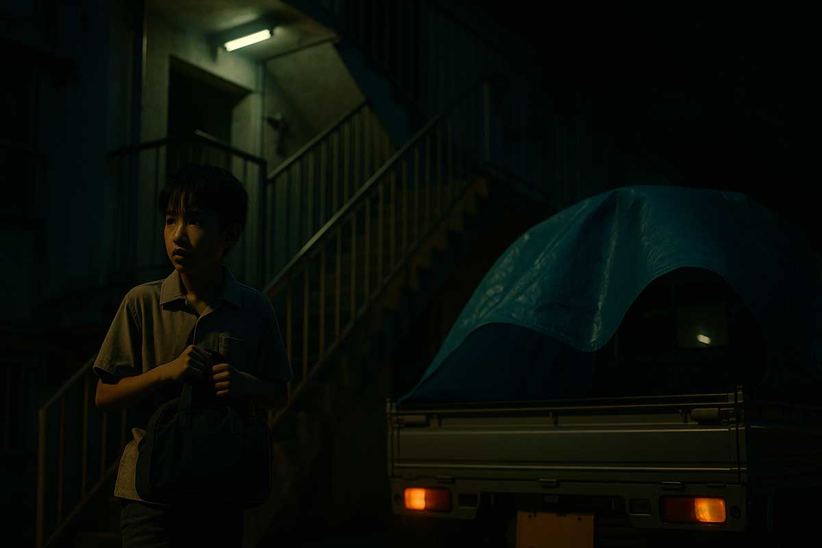 団地の外階段は、いつもより少しだけ暗く見えた。