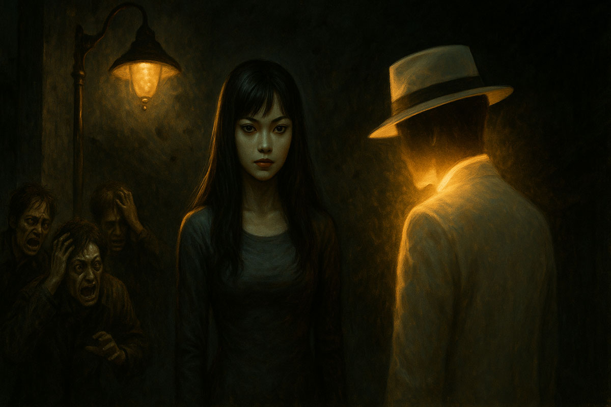 夜の街灯の下、ひとりの少女が立っていた。長い黒髪、白い肌、そして人を惹きつける美しさ。その名は――富江。