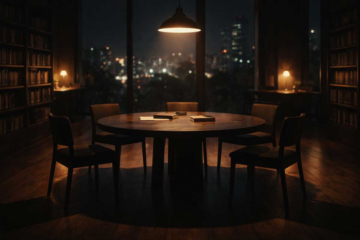 作家だけが、円卓を囲んで座っている。